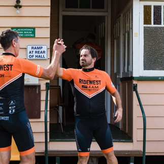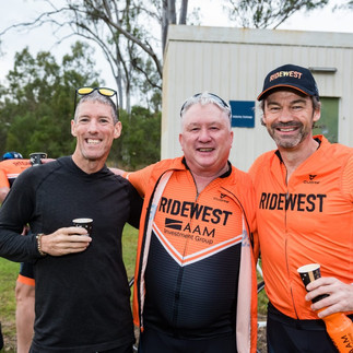 As we departed Amberley and made our way towards our first stop at Forrest Hill, the team were so grateful to have the guidance of Troy and Duncan our police escorts to help us navigate the traffic. Their presence gave us all peace of mind and made it our smoothest first day of RideWest. At Forrest Hill, our first rest stop for the day we took a moment to celebrate Andrew Perkins (Perky’s) 62nd birthday. What a privilege to share his birthday with him on this his third RideWest adventure.