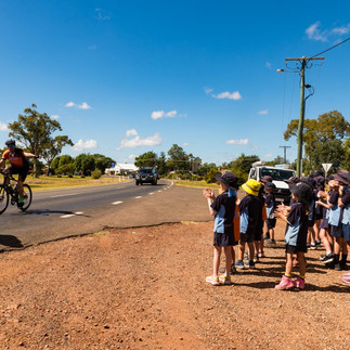 As we departed Morven, the local primary school students lined the roadside to cheer us on and wave at the riders—a heart warming highlight for both the kids and us.
